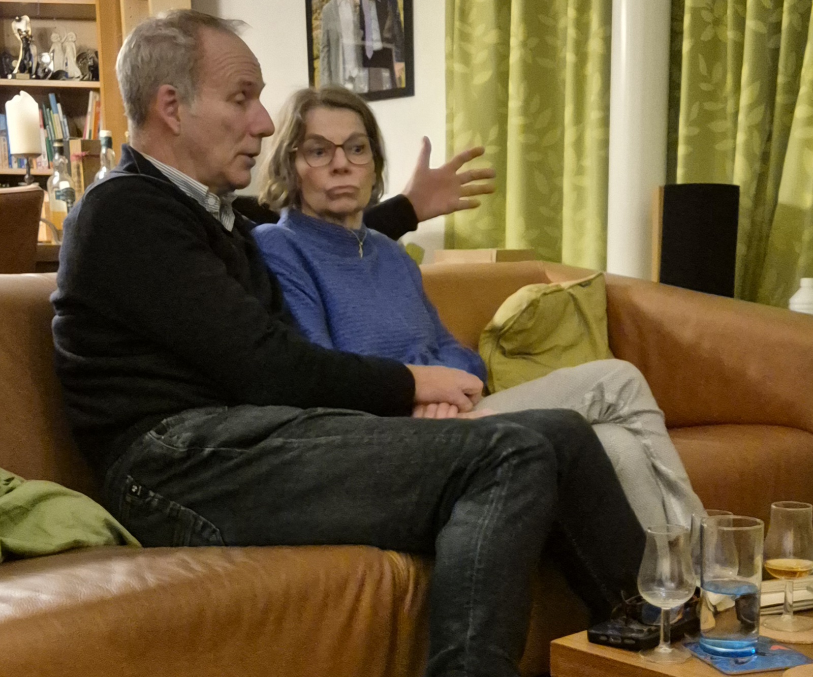 Voor deze bijeenkomst was het Genietschap weer compleet bij Andre Bos. Regina was met Eric van Frachem meegekomen en had traditiegetrouw weer voor een heerlijke taart gezorgd bij de koffie. Er was weer een overdadig aantal mooie flessen meegenomen. Eric hield deze keer geen welkomstspeech, maar Nico kon wel melden dat in 2026 het zilveren jubileum van het Genietshap gevierd kan gaan worden; 25 jaar lang officieel genieten van de allermooiste flessen in onze collecties. Tijdens de koffie werd door Alexander en Nico een voorzichtige poging tot line-up gedaan. Dat viel nog niet mee bij dit riante aanbod, maar over de eerste 6 tot het eten was er wel vrij algemeen overeenstemming.