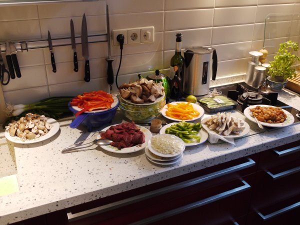 Andre ging tussentijds naar de keuken om een voorgerecht voor ons te bereiden. Het was een tomatensoep a la Johannes van Dam. Deze was zo lekker dat we daar geen foto van gemaakt hebben, we hadden even andere dingen te doen.