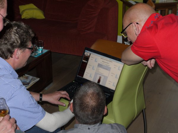 Ja, maar deels op de foto want Gerrie was eigenlijk druk in de keuken bezig om voor ons diner e.e.a. voor te bereiden. Het was nog lang niet klaar maar het zag er wel al heel veel belovend uit. Vandaag sluit de Whiskyauction en Nico en Andre hadden verschillende biedingen uit staan. Reden genoeg om even te kijken hoe de veiling verliep en zo nodig nog wat bij te stellen.