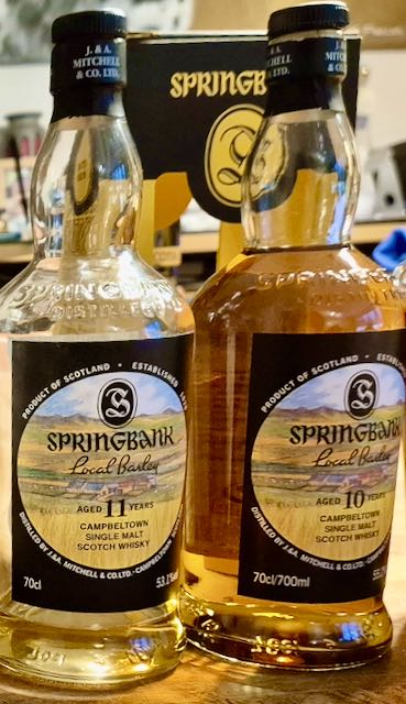 We gaan beginnen aan de cask strength bottelingen en met een duotest van 2 Springbank Local Barley edities hebben we meteen al iets bijzonders. Beide edities zijn op basis van Bere Barley; wel van verschillende boerderijen. De 11Y is op 100% Bourbon vaten gerijpt en is het laatste restje uit de fles. De score van deze editie in de recente Springbank Local Barley reeks prijkt nog steeds bovenaan bij Alexander en Nico. De 10Y is net geopend en is gerijpt op 60% Bourbon vaten en 40% Sherry.