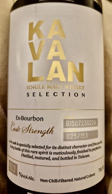 14. Kavalan Solist ex-Bourbon Single Cask Strength Single Malt Whisky, 53.2%, Cask no. B150723022A, bottle 122/153, Specially selected and bottled for The Netherlands, Edition 2023 Drankdozijn